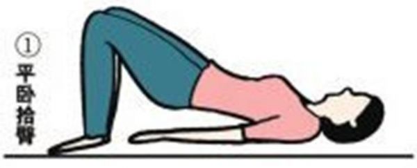 仰臥位,以雙足、雙肘和后頭部為支點(五點支撐)用力將臀部抬高,如拱橋狀時,停留5秒。