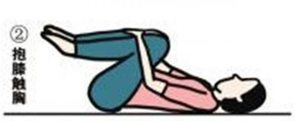 仰臥位,雙腿屈膝屈髖,以雙手抱著雙腿,讓雙腿緊貼胸部,保持姿勢并晃動身體,然后完全放松回位。