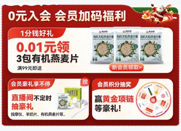 自12月16日20:00起至12月25日23:59,盛健羊乳在天貓平臺精心籌備了一系列豐富多彩的圣誕活動?;顒悠陂g,消費者將享受到跨店滿減優(yōu)惠,每滿300即可減免40元,讓購物更加實惠。同時,直播補貼活動也將如火如荼地進行,與主播親密互動,深入了解產(chǎn)品細(xì)節(jié),讓購物體驗更加生動有趣。此外,全店商品均參與滿贈活動,新人入會禮及直播間專屬玩法更是為新會員和忠實粉絲帶來了滿滿的驚喜與福利。