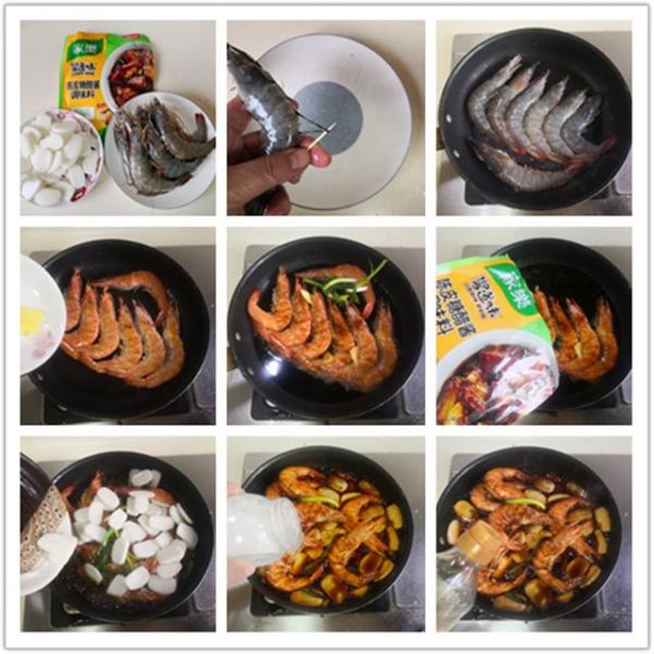 小貼士: 1. 處理好鮮蝦, 剪去蝦須,剪開蝦背,挑出蝦線; 2. 將處理好的鮮蝦放入鍋中煎至雙面金黃,加入姜片、小蔥和“家樂”陳皮糖醋醬調(diào)味料; 3. 加入年糕,一起燜煮至熟,最后按個人口味加入少許鹽和白醋即可。