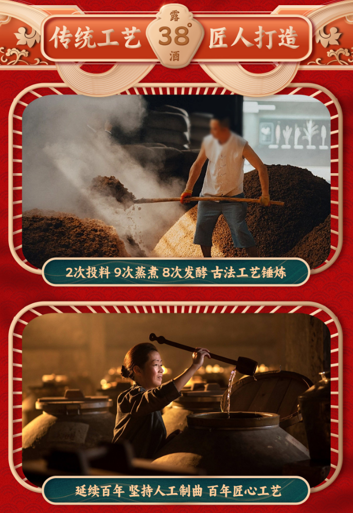 ②古——傳承古法、三進(jìn)四出:從制曲到配佐料,從蒸餾到發(fā)酵,嚴(yán)格遵循古法技藝,操作上沿襲"續(xù)渣混蒸,三進(jìn)四處"傳統(tǒng)工藝。