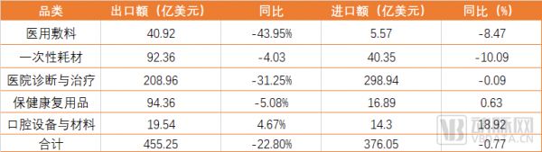2023年我國醫(yī)療器械類產品進出口統(tǒng)計 數(shù)據來源:中國醫(yī)藥保健品進出口商會