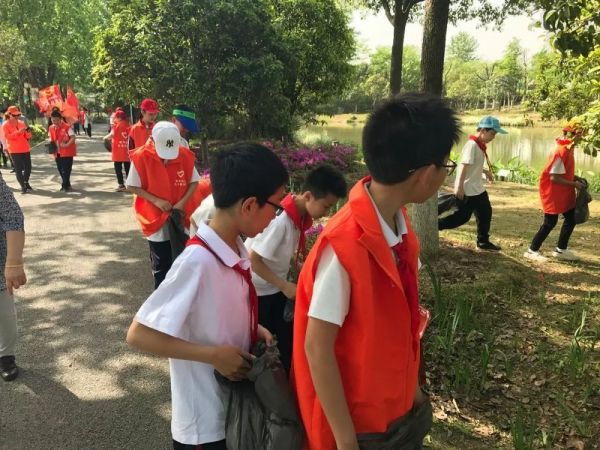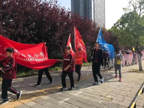 上午8點,萬科高爾夫小學全體師生齊聚在教學樓前的操場上,校服、紅領巾及遮陽帽全部穿戴整齊,隊旗、班旗、小紅旗迎風飄揚。大家明確了本次活動的主要行程及安全方面需要注意的問題后,準時向目的地出發(fā)。行進途中,銀湖社區(qū)志愿者們提前到位,與帶隊老師和家長們指揮學生迅速有序地過每一個路口。經過近1個的行程,全體人員抵達金銀湖濕地公園,高興地進行合影留念。
