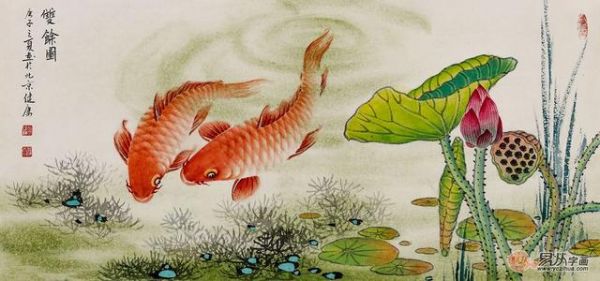 書房掛畫 藍(lán)健康老師新品花鳥畫《雙魚圖》作品來源:易從字畫