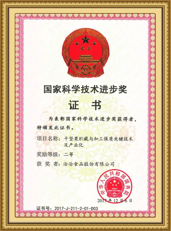 在包裝環(huán)節(jié),洽洽不斷優(yōu)化包裝材料,并自主研發(fā)雙吸型脫氧劑,使得干燥劑和脫氧劑合二為一,在確保堅果新鮮的同時,降低原料消耗,同時滿足行業(yè)的低碳需求以及消費者對健康和美味的追求。其參與的“干堅果貯藏與加工保質(zhì)關(guān)鍵技術(shù)及產(chǎn)業(yè)化”項目還榮獲國務(wù)院頒發(fā)的國家科學(xué)技術(shù)進步獎。