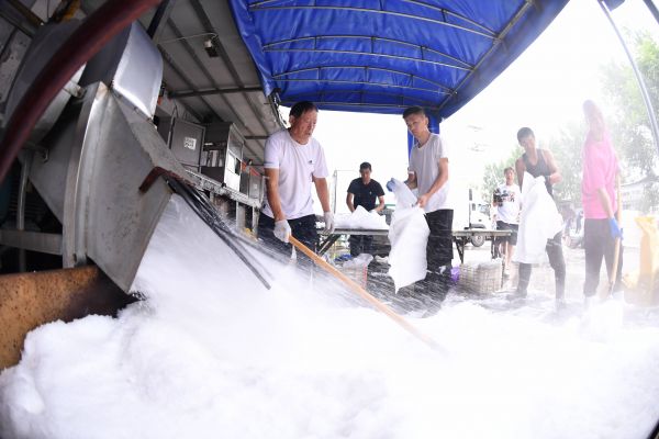新發(fā)地市場總經(jīng)理張月琳表示,夏至過后,市場對冰塊的需求量大增,制冰場開足馬力,加大冰塊的生產(chǎn)制造,每天的供應(yīng)量達(dá)千噸。除了加大冰塊的生產(chǎn)和供應(yīng)為蔬菜水果降溫保鮮外,市場還為商戶送綠豆湯、礦泉水以及防暑藥品,并增加帳篷的供應(yīng)和冷鏈車的投用,采取一系列防暑降溫措施,保障農(nóng)產(chǎn)品穩(wěn)定供應(yīng)。