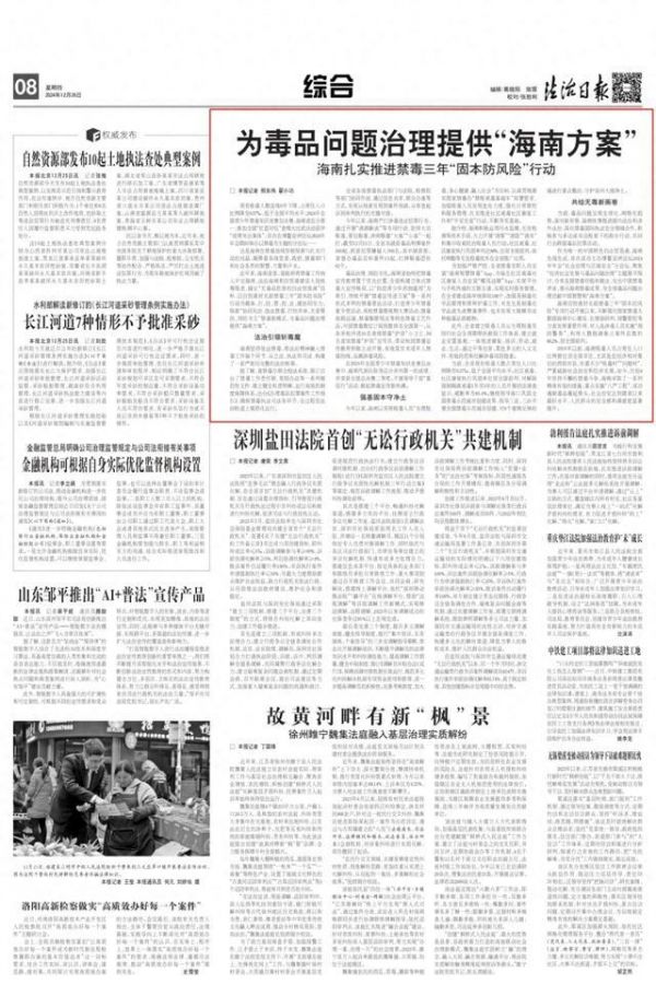 「法治日?qǐng)?bào)」為毒品問(wèn)題治理提供“海南方案”——海南扎實(shí)推進(jìn)禁毒三年“固本防風(fēng)險(xiǎn)”行動(dòng)