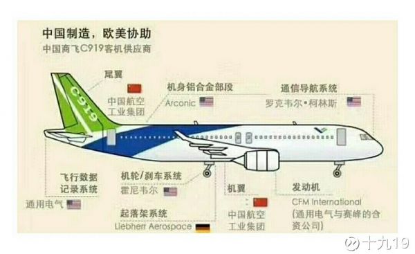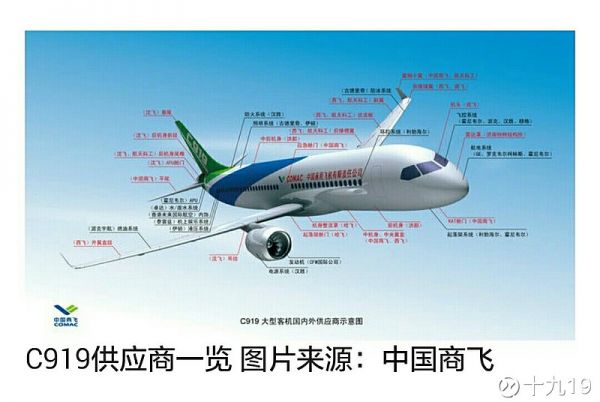 真正的C919供應(yīng)商例表: 1、機(jī)頭,機(jī)體 中機(jī)身、外翼翼盒、副翼、后緣襟翼、擾流板 :成飛 西飛 中航飛機(jī)(中)。 2、垂尾、平尾 :沈飛 (中) 3、機(jī)翼擾流片 :昌飛 (中) 4、前機(jī)身和中后機(jī)身 :洪都航空(中) 5、雷達(dá)罩 :濟(jì)南特種所 (中) 6、發(fā)動機(jī):CFM公司LEAP--1C (美法) 7、通信與導(dǎo)航系統(tǒng):中航工業(yè)電科電子(中)/柯林斯(美) 8、核心處理系統(tǒng)、座艙顯示系統(tǒng)、大氣數(shù)據(jù)系統(tǒng)、慣性/衛(wèi)星導(dǎo)航系統(tǒng)、飛行數(shù)據(jù)系統(tǒng): 中航上海測控所 中航電子(中) / 柯林斯(美) 9、飛行控制系統(tǒng) :霍尼韋爾(美)/中航工業(yè)西安飛控公司(中) 10、機(jī)電和電源系統(tǒng): 聯(lián)合技術(shù)(美)/中航機(jī)電公司,上海航空電器(中) 11、機(jī)載照明系統(tǒng) :古德里奇公司(美)/江蘇彤明公司(中) 12,輔助動力裝置、APU系統(tǒng):霍尼韋爾(美)/中航發(fā)動機(jī)公司(沈陽) (中) 13、燃油系統(tǒng)、液壓系統(tǒng)、空氣管理系統(tǒng): 金城南京 (中) 14、起落架:利渤海爾(德)/ 中航工業(yè)起落架公司 (中) 15、剎車系統(tǒng):霍尼韋爾(美)/博云新材 (中)