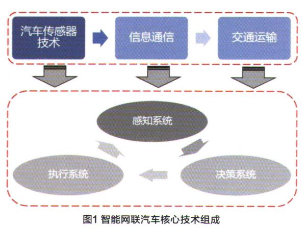 智能網(wǎng)聯(lián)汽車智能駕駛的核心技術(shù)由環(huán)境感知系統(tǒng)、智能決策系統(tǒng)以及控制和執(zhí)行系統(tǒng)組成(圖1)。