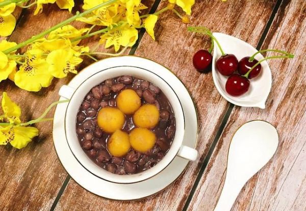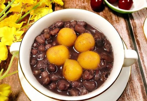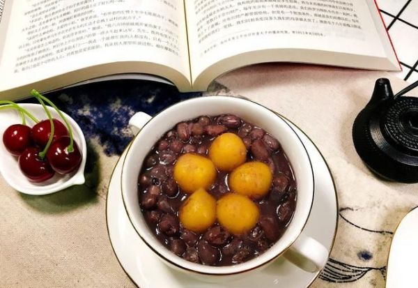 2. 紅豆下鍋煮到熟透,然后加入糯米丸。煮到丸子飄起就可以了。
