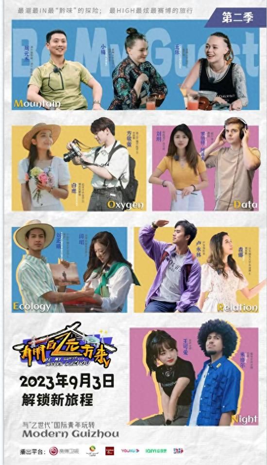 《有朋自遠(yuǎn)方來(Be My Guest)》第二季的嘉賓組成相比第一季來說,來自更多的國(guó)家、從事更廣泛的職業(yè)。記者出身的探險(xiǎn)攝影師周元杰、深耕人工智能小巴數(shù)年的語言“小天才”劉玥、古靈精怪的中學(xué)英語老師王可愛等國(guó)內(nèi)嘉賓。。。帶領(lǐng)德國(guó)籍著名視頻博主包子、俄羅斯籍留學(xué)生王樂和巴西籍運(yùn)動(dòng)時(shí)尚達(dá)人米格爾等外籍嘉賓,以更深度、更新穎、更沉浸的體驗(yàn)視角,解鎖更多專屬于貴州的旅行路線。