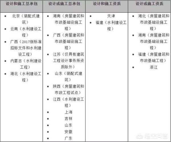 企業(yè)資質(zhì)方面,梳理各省發(fā)布的工程總承包相關(guān)政策,能夠承接工程總承包項(xiàng)目的企業(yè)普遍需具有設(shè)計(jì)和/或施工(總承包)資質(zhì)↓↓↓