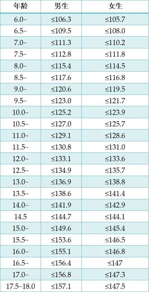 分年齡身高篩查生長遲緩界值范圍