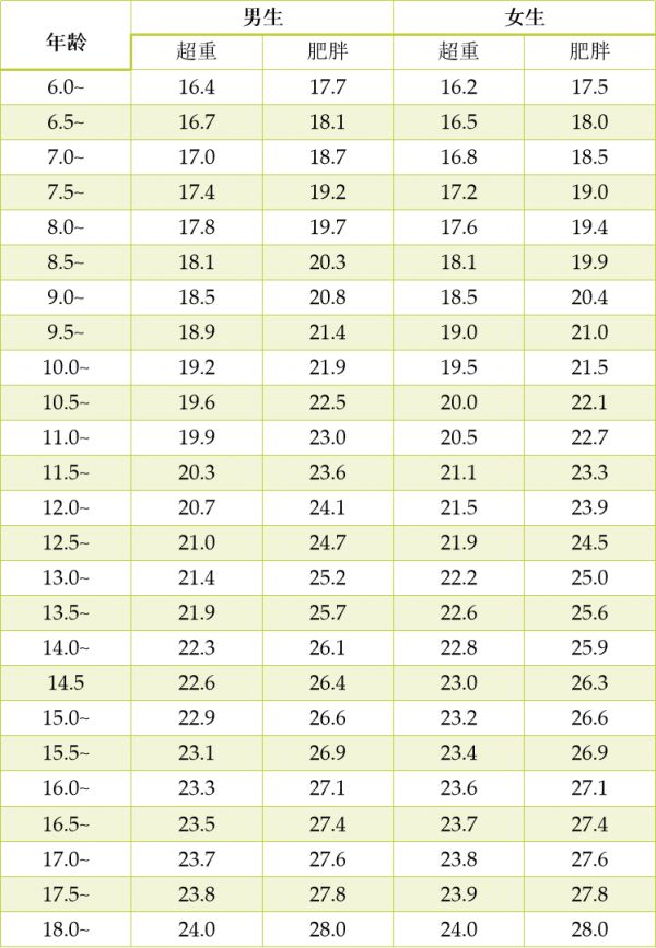 BMI超重/肥胖判斷標準