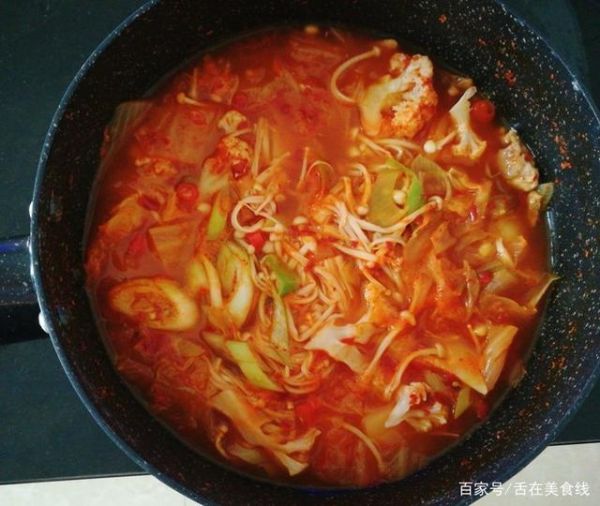 用料 宗家府泡菜150~170克 蔬菜(我放了金針菇200g,土豆80g,花菜100g)你隨意 豬肉60g(我吃不了太多肉,你可以多放一些) 大蔥25~30g 小米辣3個(gè)(怕辣可不放) 辣椒面2湯匙(30g) 鹽2茶勺(6g)