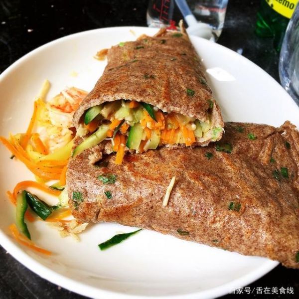 黑全麥減脂蔬菜餅的做法 先把蔬菜洗了切絲,這個(gè)大家都會,我就不多說了金針菇切小段吧!吃的時(shí)候不會太長難咬動(dòng)!蝦仁剝殼去腸,往背部切開!減肥最主要的是少油少鹽,熱鍋下油,一點(diǎn)點(diǎn)就好,然后蝦放進(jìn)去炒差不多了放入紅蘿卜,依次放入金針菇,青瓜!期間可以用蓋悶一下,然后放一點(diǎn)鹽,黑胡椒粉!翻炒下出鍋剩起!面粉漿提前準(zhǔn)備好哈,一個(gè)雞蛋,加小半碗水,再加一大勺黑全麥粉!下點(diǎn)蔥花!一點(diǎn)鹽調(diào)味。攪拌均勻!具體看起來不會那么稀就好了,也不要太稠,攤餅時(shí)不好攤!熱鍋下少量油,準(zhǔn)備好的面餅漿倒去鍋均勻的分布好!小火慢煎!鏟子弄下感覺差不多凝固不散了翻面煎!很快熟的!再翻面!熟了可以關(guān)火了把炒好的菜擺好放上去!卷起來(做的時(shí)候菜要適量哈太多了會散)裝盤,切半。好了,簡單又美味的黑全麥?zhǔn)卟孙灴梢韵碛昧?,沒有那些其他餅的油膩,又有青瓜的清爽!兩大塊,夠飽了,當(dāng)早餐還可以自己打個(gè)豆?jié){喝搭配,完美!