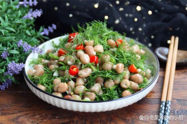 【茴香花生米】所需材料:花生米250克、茴香菜150克、鹽4克、花椒10粒、大料1個、