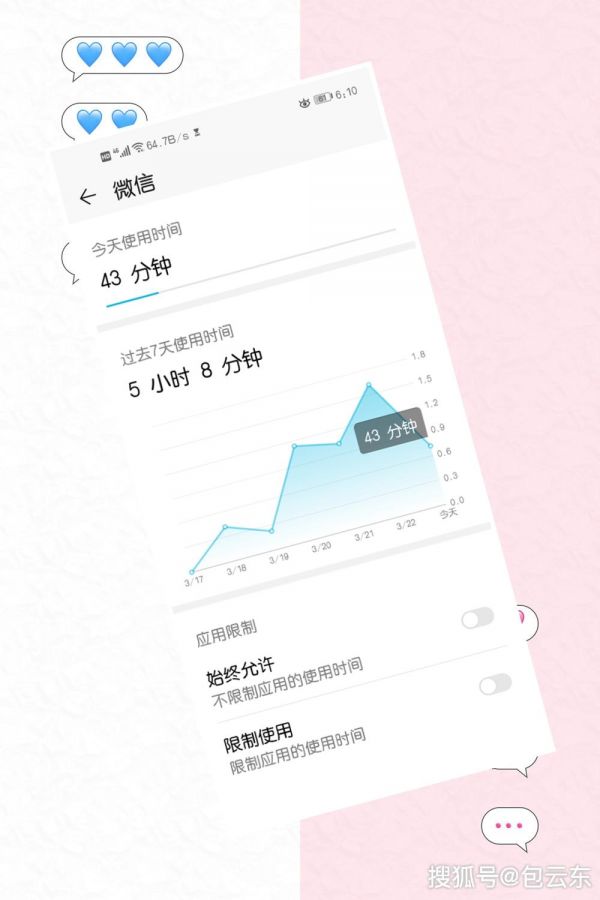 時間寶貴,理應合理分配,在健康使用手機,使用統(tǒng)計可以看到今天或過去七天的應用使用時長和排行,以便科學規(guī)劃自己的每天使用手機時間。