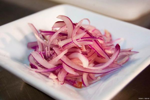 做法:洋蔥去外皮,洗凈,切片成絲,放在盆中,加鹽輕揉,見出汁,再放醋和白糖拌勻,1小時(shí)后,澆上香油即可食用。
