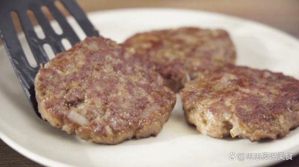 3、等到牛肉餅定型后拿走模具,繼續(xù)用小火煎至底部微黃,用鏟子翻面后繼續(xù)煎一會(huì)兒,等到兩面都煎至金黃后即可出鍋,擠上番茄醬,好吃又解膩。