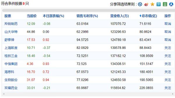 ,A股能做到營收10億以上且毛利率60%以上的醫(yī)藥公司一共9個