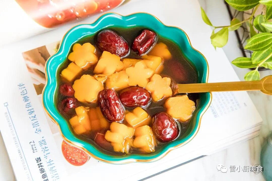 5、鐺鐺鐺,美味南瓜煮紅棗就做好啦,甜蜜蜜的,又滋補,早上吃,晚上吃, 都適合。經(jīng)常來一碗,越吃越美。