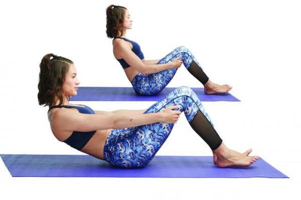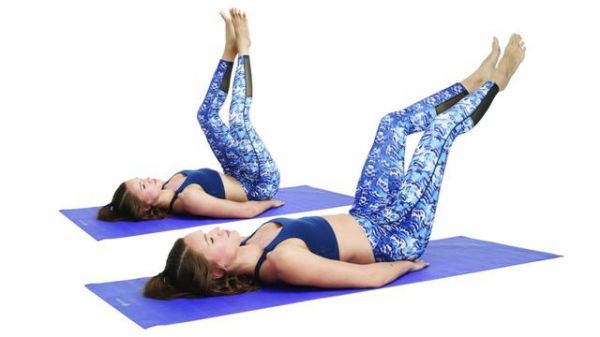 第二個步驟雙腿繼續(xù)保持屈膝抬起