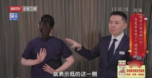 簡單背手動(dòng)作,如果兩側(cè)高度有差異,則表示低的這一側(cè)肩關(guān)節(jié)活動(dòng)度出現(xiàn)了問題。